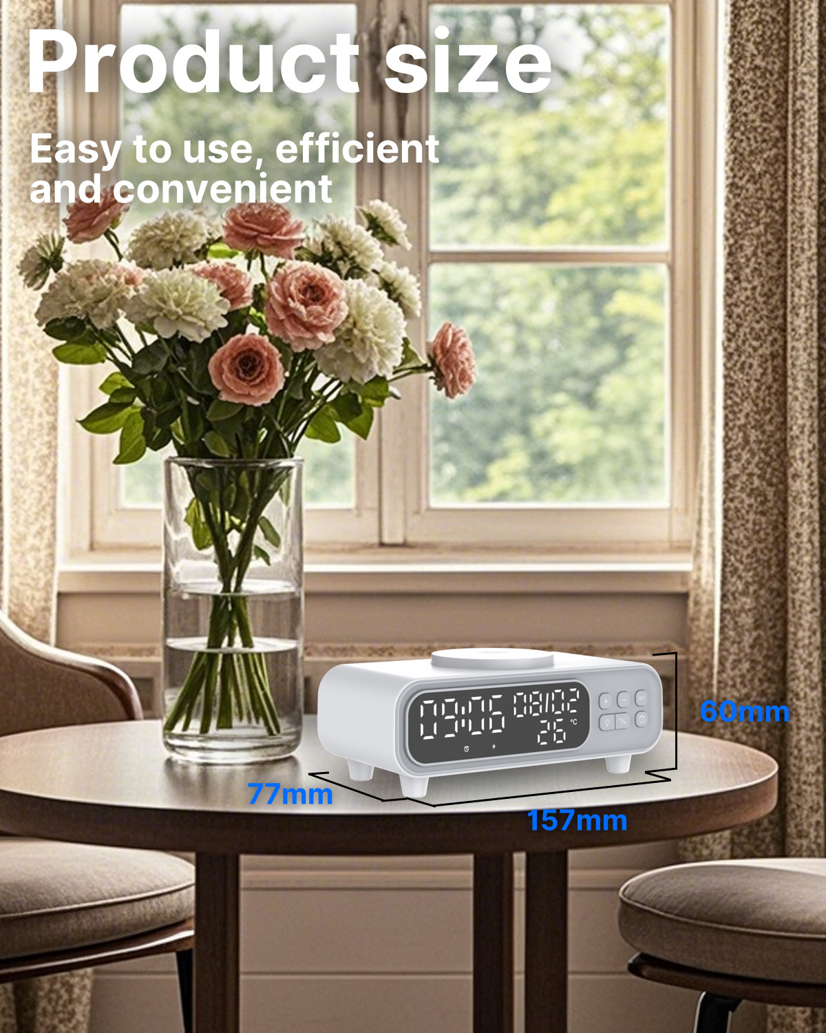 This smart night lamp allows you to wirelessly charge your mobile phone, wake up with a built-in alarm clock, and check the room temperature at a glance. Its soft ambient light creates a calm atmosphere, making it ideal for bedrooms, offices, and study spaces.