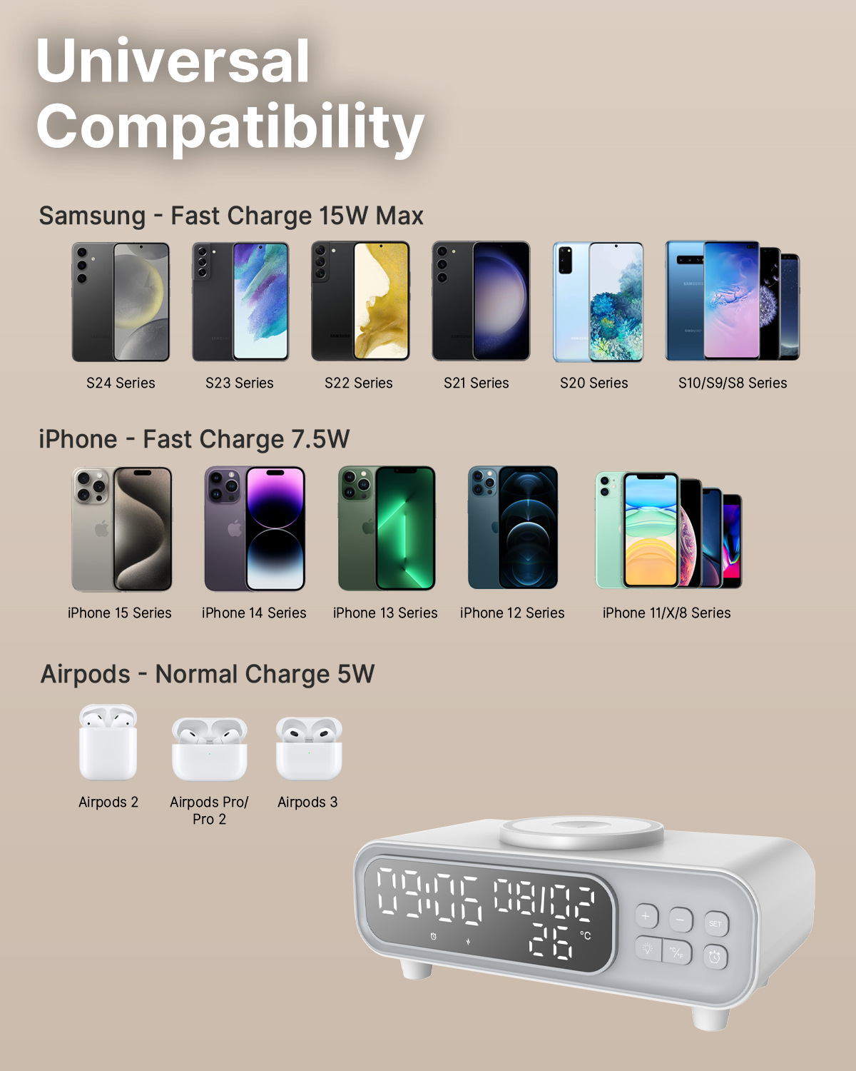 Simplify your bedside setup with this wireless charger night lamp, designed to combine lighting, charging, and time management in one compact device. No more cluttered nightstands or searching for charging cables in the dark.